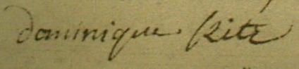| Signature sur l"acte de naissance de sa nièce Marguerite RITZ le 17 décembre 1746 à SILLEGNY |